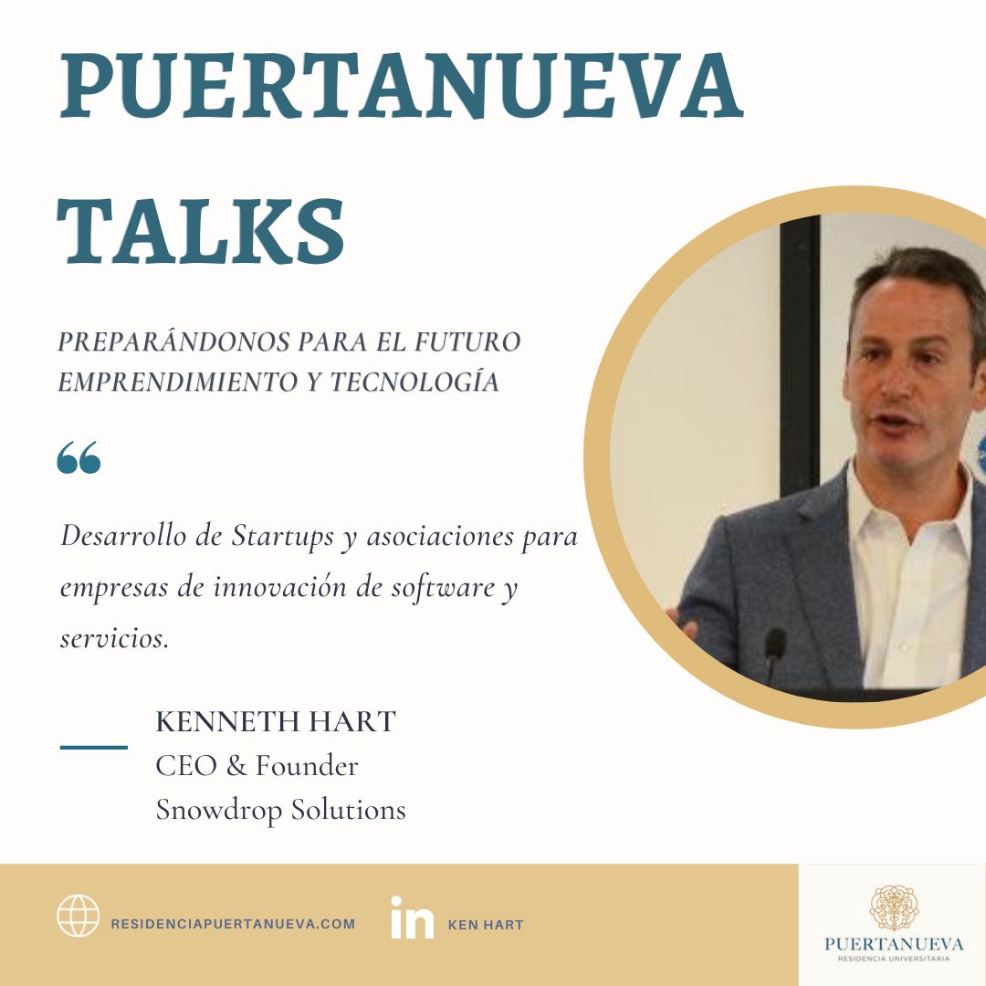 El pasado jueves 18 de marzo contamos con la presencia de Kenneth Hart, CEO de Snowdrop Solutions, como invitado de excepción en una nueva sesión de Puertanueva Talks, con una conferencia titulada “Emprendimiento y Tecnología: retos y oportunidades de la disrupción tecnológica”.